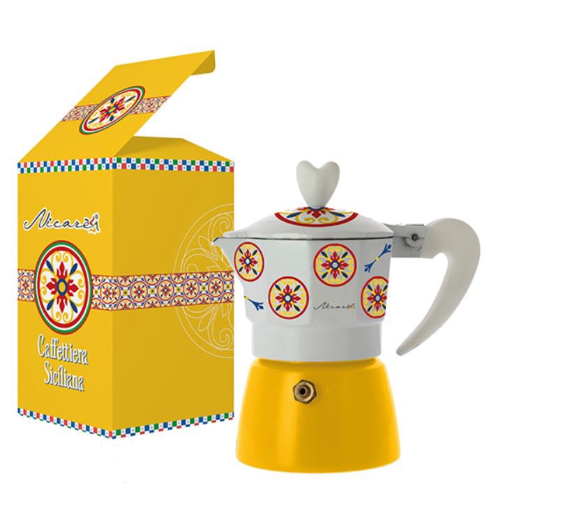 Caffettiera con decori in maiolica