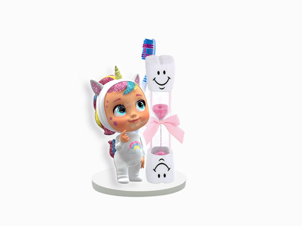Contiene una clessidra, un portaspazzolino ed una piccola sagoma del personaggio preferito.
