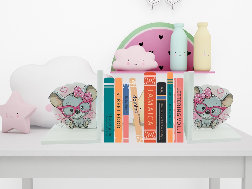 Fermalibri in PVC raffiguranti una topolina fashion. L’oggetto è realizzato interamente a mano, con base da 1 cm per renderlo più solido e pesante.