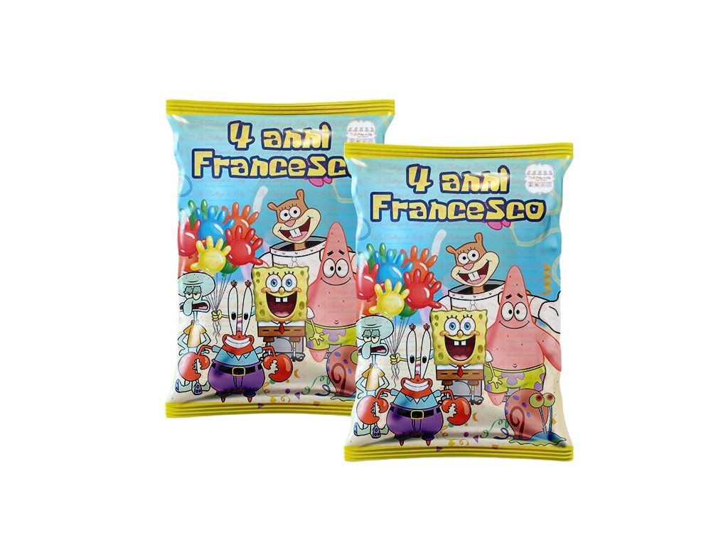Le patatine possono essere realizzate a vostro piacimento con il personaggio o soggetto scelto, tema della festa con il nome e l’età di vostro/a figlio/a.