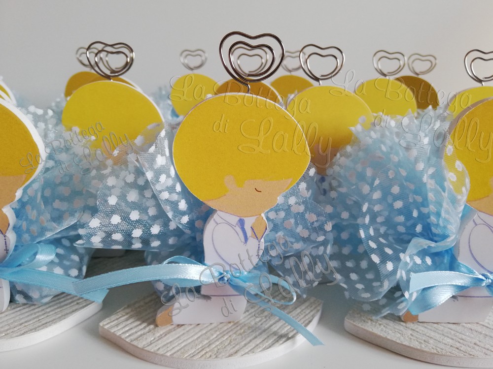La confezione consiste nel sacchettino con confetti e bigliettino.