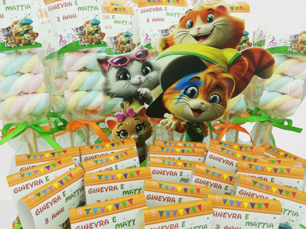 La torta contiene 10 Mashmallow e 10 Lecca Lecca.